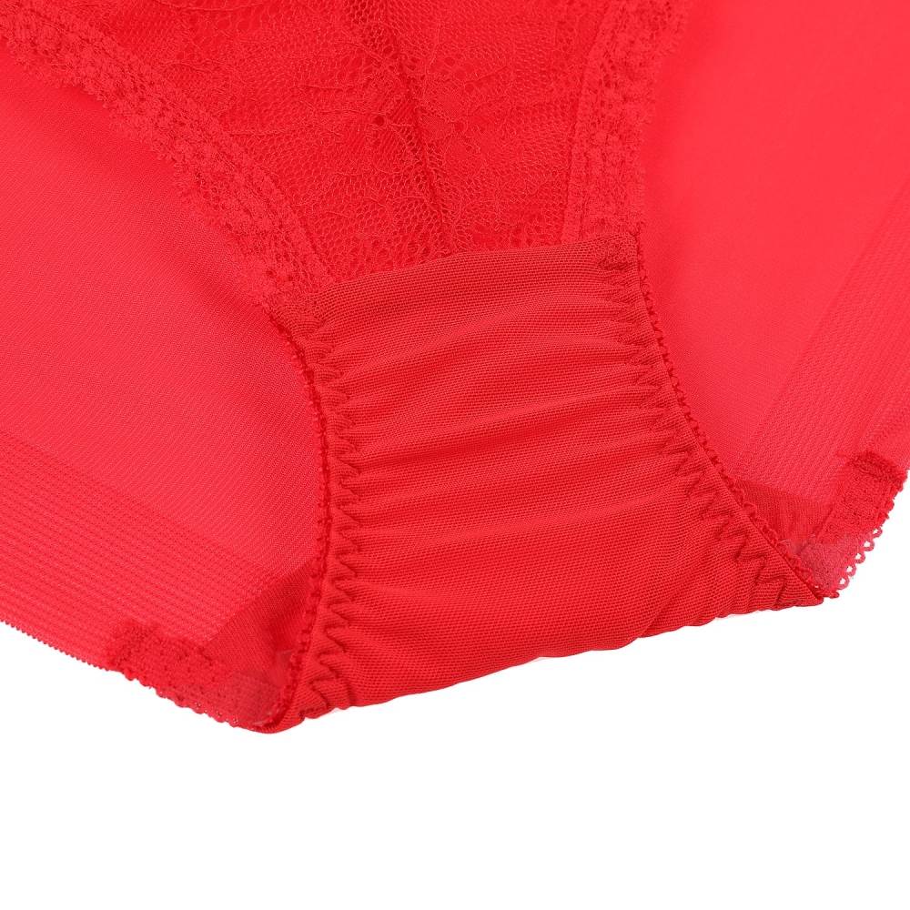 섹시한 레드 레이스에 뒷판 햄 원단으로 제작된 여성 팬티.