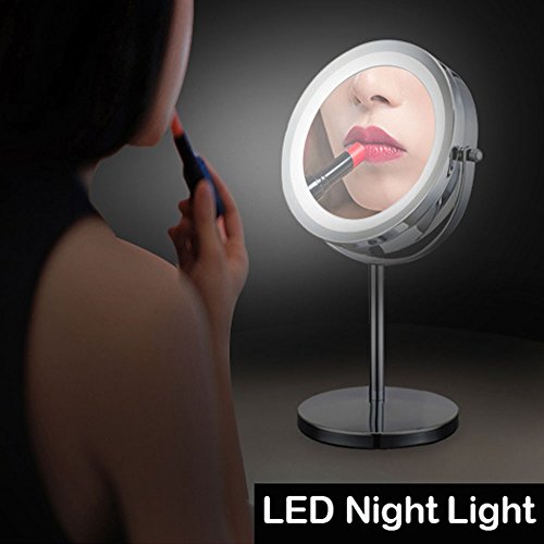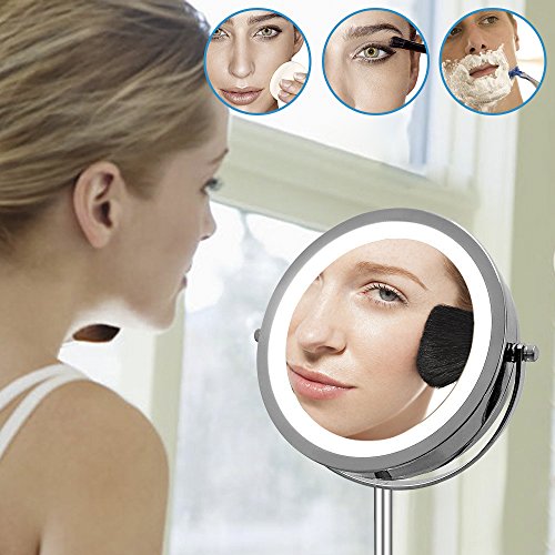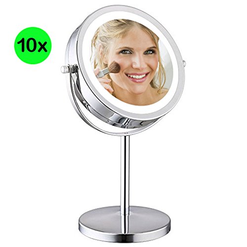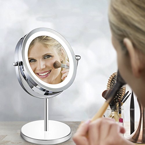 Best Vanity Makeup Mirror with LED lights by AMZNEVO - Night Lighted Cosmetic Mirror with 10X Magnification for Beauty, 7 inch Round Chrome Polished...