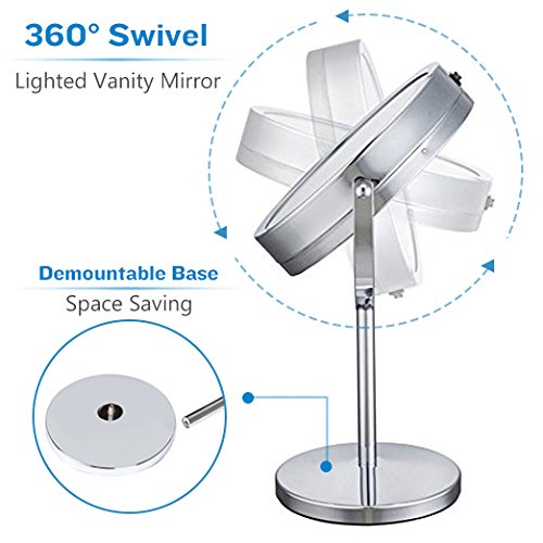 - ERGONOMIC: The 360 degree swivle mirror, with 7 inch large enough panels, is designed with special attention to ergonomics - you will not have to lean in too far or too close when make-up; the demountable base allows you to put it apart into your suitcase to save space while travelling