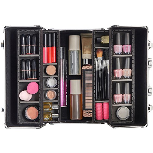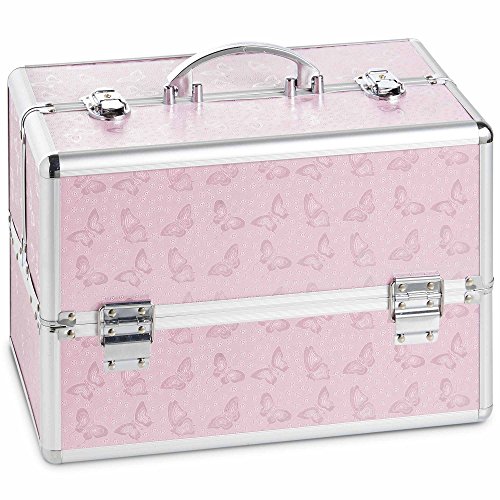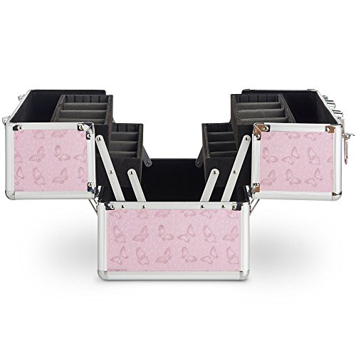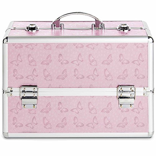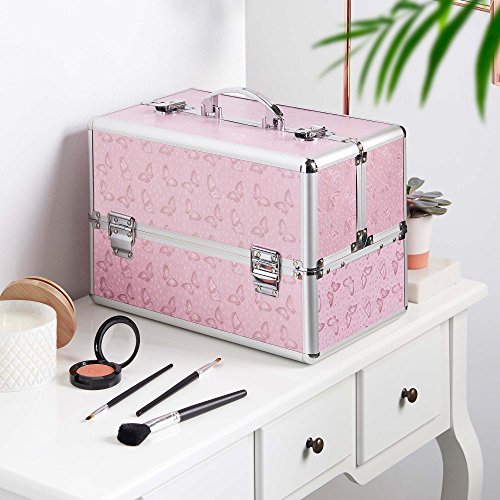 House all your beauty products in one place with the luxurious Beautify silver butterfly Vanity Case. An amazing choice for professional salons, makeup artists and home use alike, this truly stunning case is perfect for storing, transporting and protecting all those beauty essentials you can't live without! Powders, eyeshadows, foundation, lipsticks, liners, varnishes, skincare products, brushes, accessories and everything in between - you'll find more than enough room in this spacious case. Extremely spacious three tier design comes equipped with 12 removable dividers which enable you to create and adjust 16 separate compartments in the top extendable trays, two trays below and large bottom section for bigger beauty bits. Built to withstand frequent use, the case features a strong PVC outer hard case in a beautiful blush pink with stripe print to the top, on-trend rose gold aluminium frame and plated corners. A soft velvet lining adds to the chic look and helps to protect contents. Comes with a rose gold carry handle for easy transportation and lockable front clasp with two keys for security. Features four plastic feet located on the bottom corners to protect surfaces. Easy to clean - simply wipe down. Fantastic gift idea for women of all ages. Full size: 14 x 8.5 x 9.5 inches 0 |