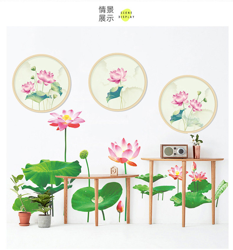 墙贴画中国风荷花墙贴壁纸自粘墙纸墙壁墙上卧室客厅装饰品墙贴纸
