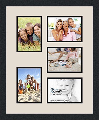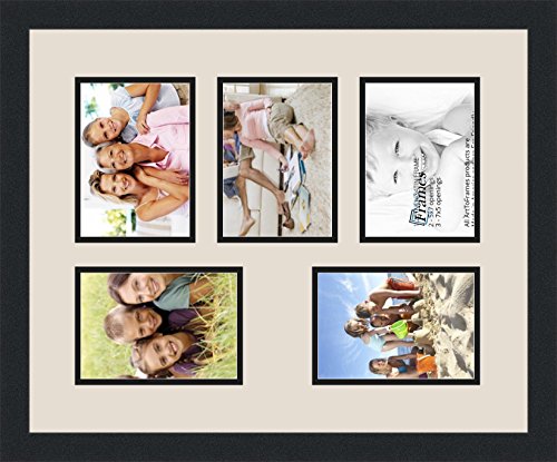 Art to Frames Double-Multimat-177-754/89-FRBW26079 Collage Photo Frame Double Mat with 5 - 5x7 Openings and Satin Black Frame
