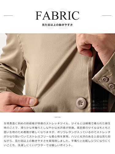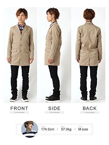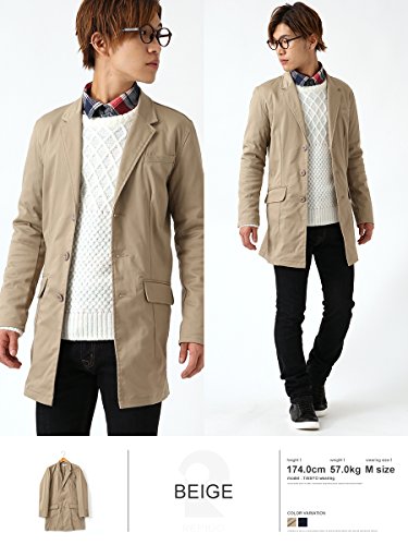 -. Feature : 通称「チェスターフィールドコート」ともを呼ばれ昨年からジワジワとメンズに流行の兆しをみせている今が旬のアイテム。テーラードジャケットのような襟元がフォーマルな印象に。 / 【素材】ポリエステル64%、綿34%、ポリウレタン2%【カラー】ベージュ、ネイビー / 【アウター】【コート】 / <Mサイズ>着丈:83.0cm、身幅:47.5cm、胸囲:95.0cm、肩幅:42.0cm、袖丈:61.0cm、襟幅:0.0cm、裾幅:0.0cm <Lサイズ>着丈:85.0cm、身幅:50.0cm、胸囲:100.0cm、肩幅:43.5cm、袖丈:63.0cm、襟幅:0.0cm、裾幅:0.0cm / <XLサイズ>着丈:87.0cm、身幅:52.5cm、胸囲:105.0cm、肩幅:45.0cm、袖丈:65.0cm、襟幅:0.0cm、裾幅:0.0cm