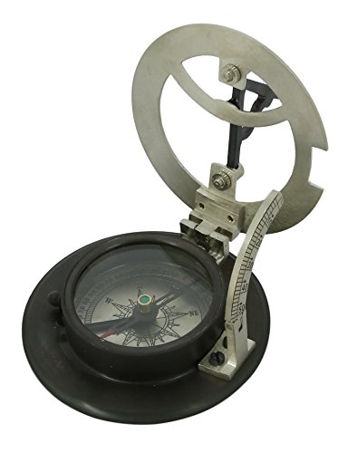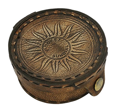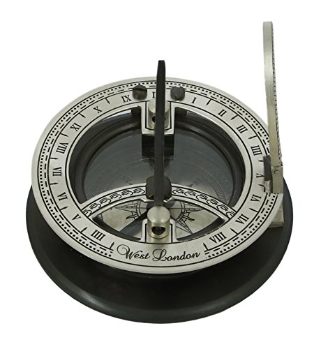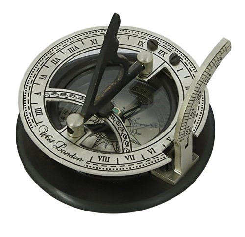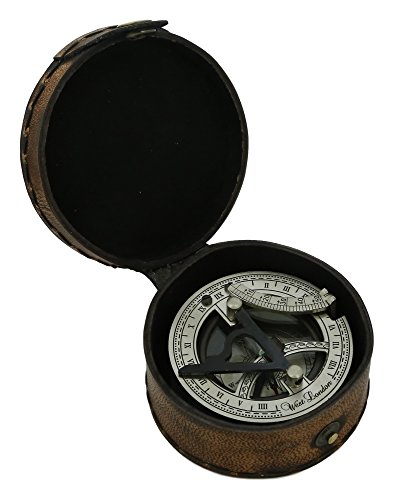 Shalinindia Solid Silver Sundial And Compass - Antique Inspired Design - Leather Storage Box Included - Travel Accessories