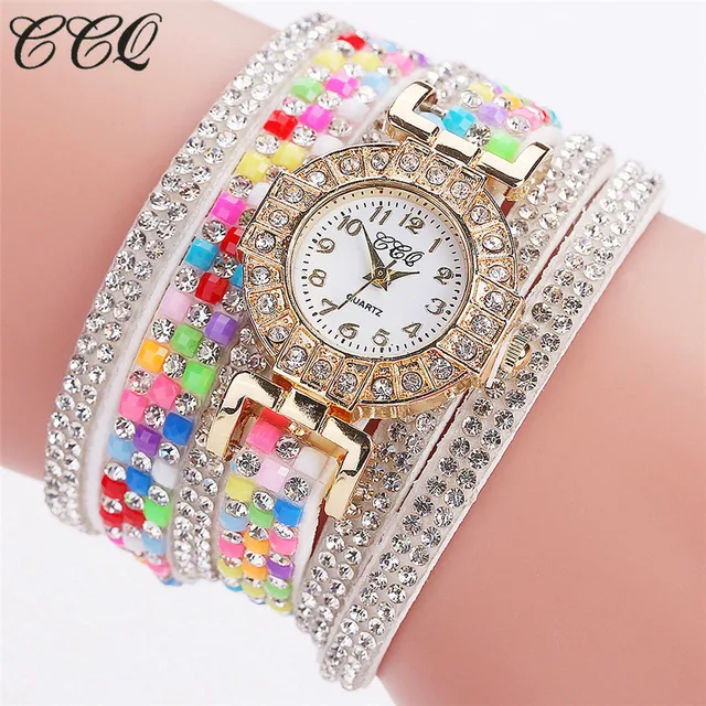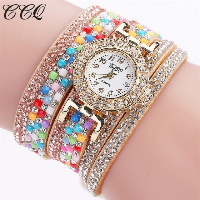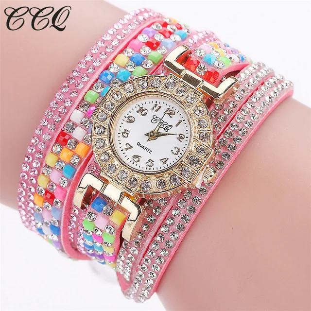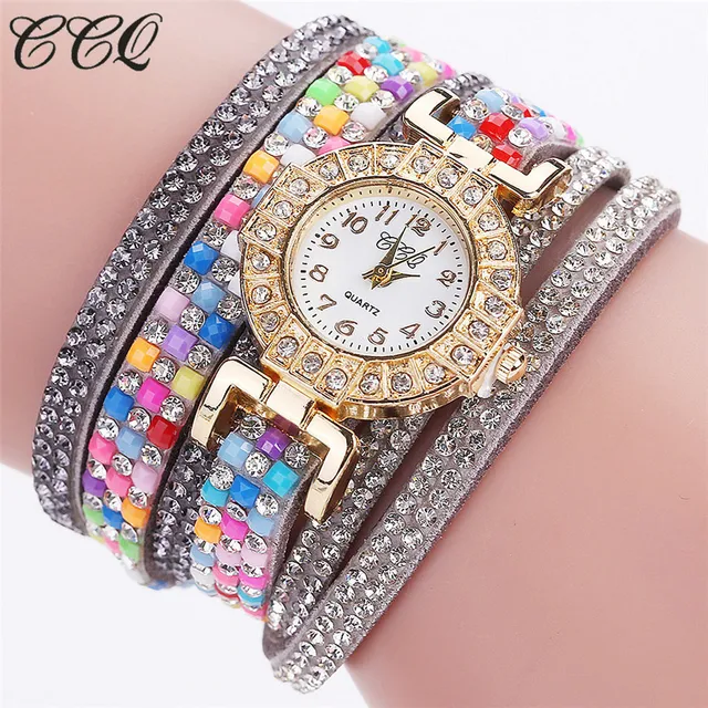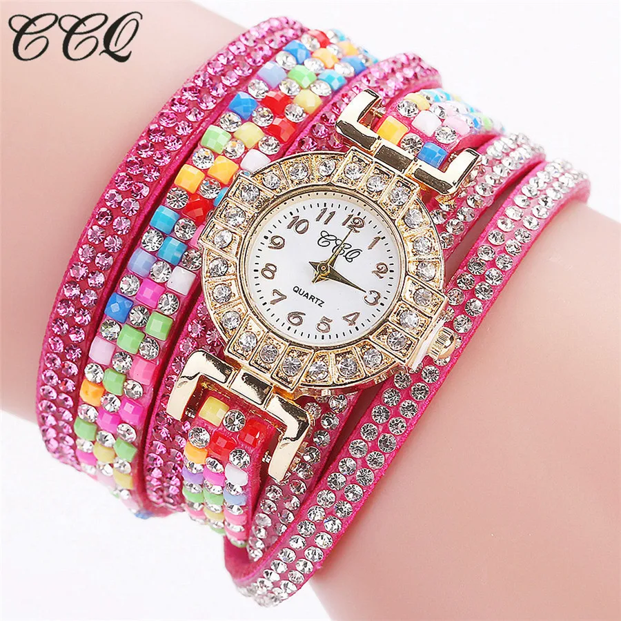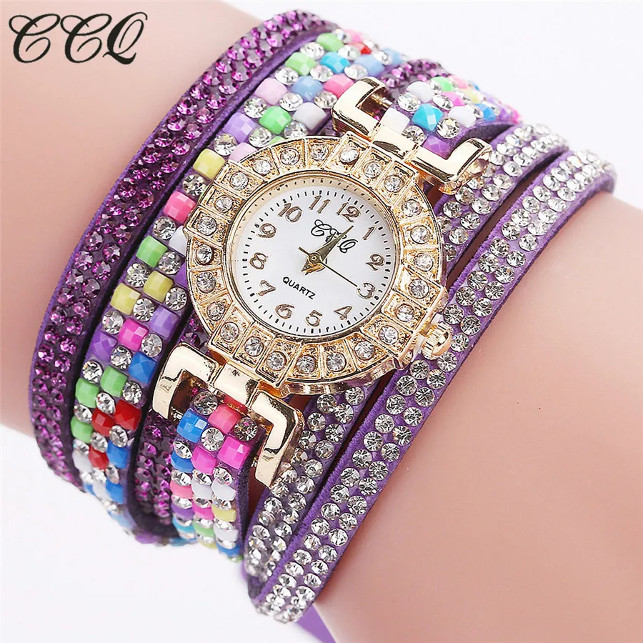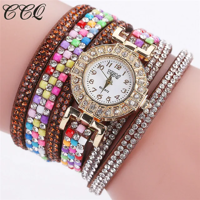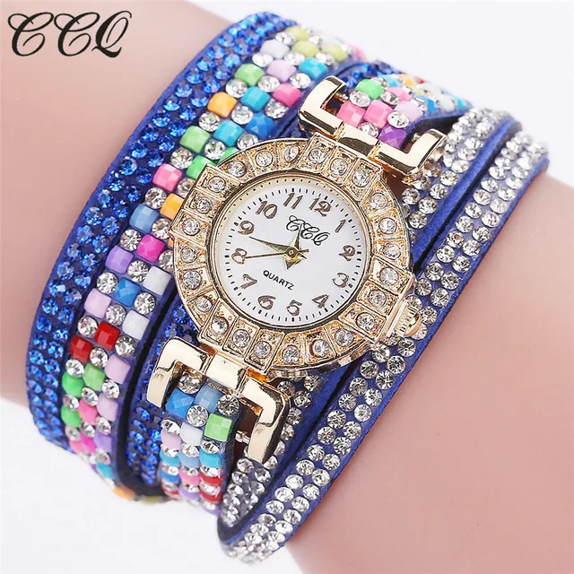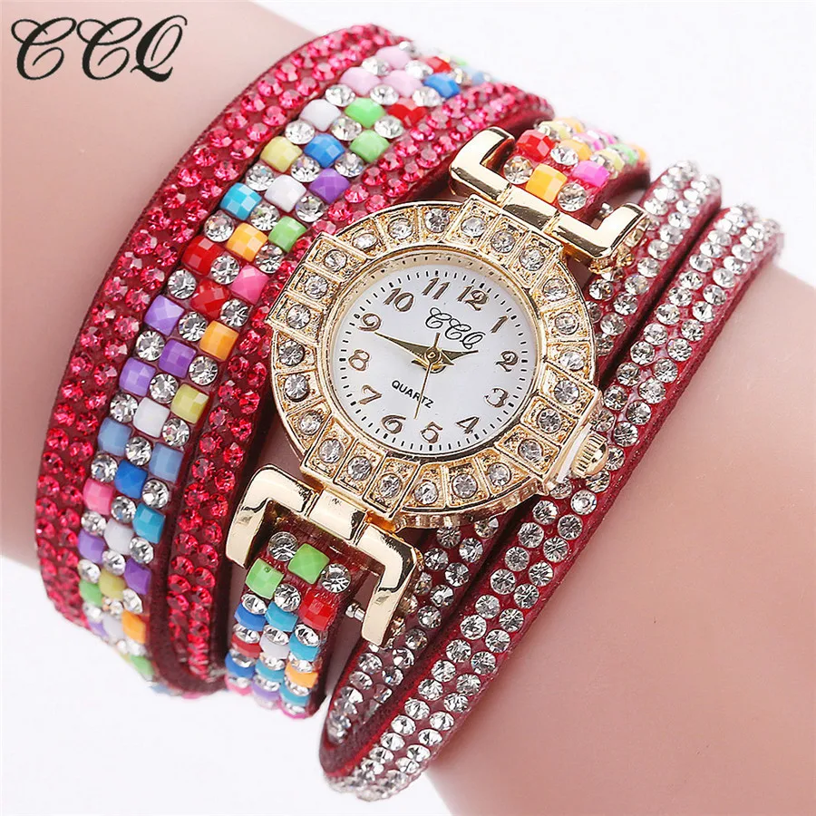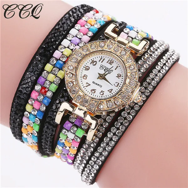 | [해외] CCQ 여성 패션 캐주얼 아날로그 석영 여성 라인 석 시계 팔찌 시계 Relojes 아저씨 빈티지 Relogio Feminino Masculino 전자 |
