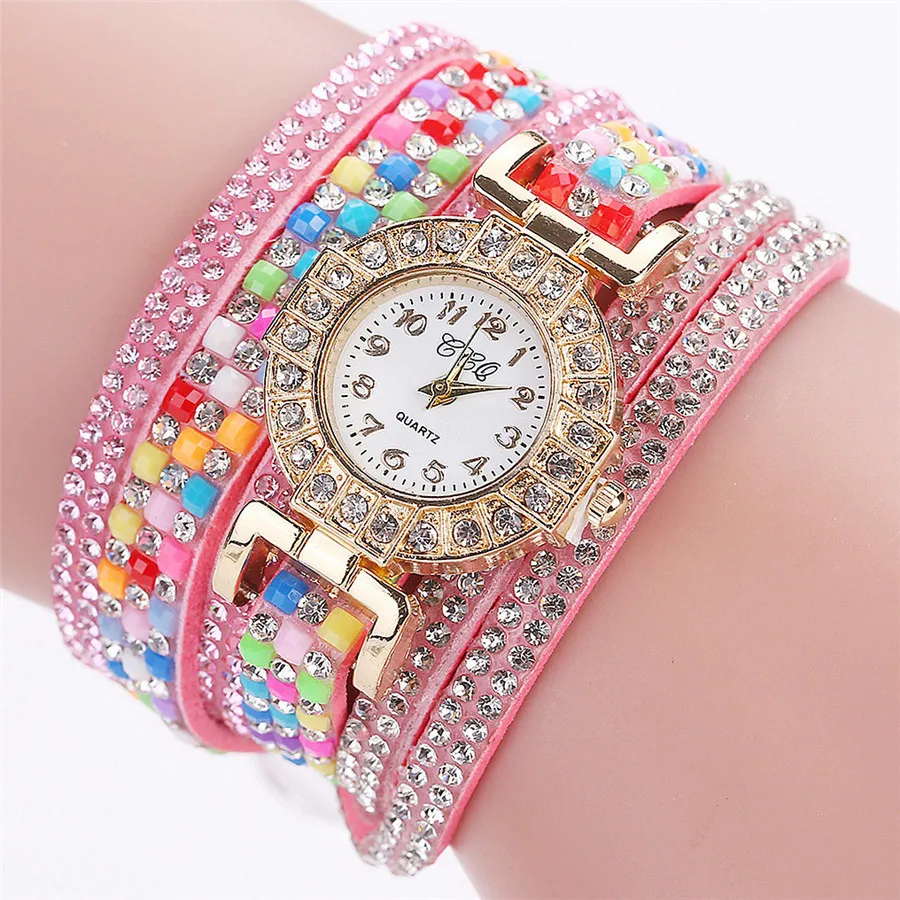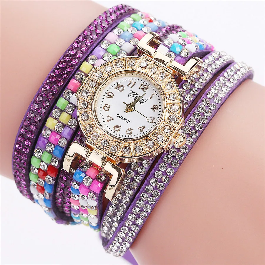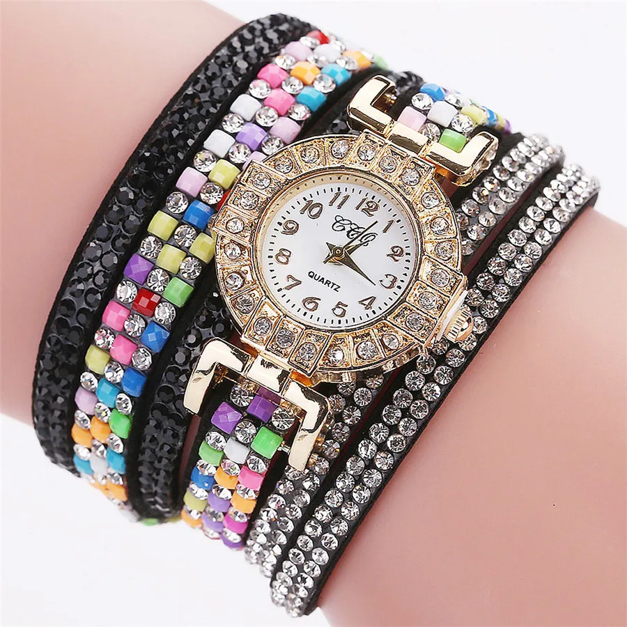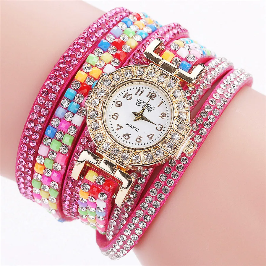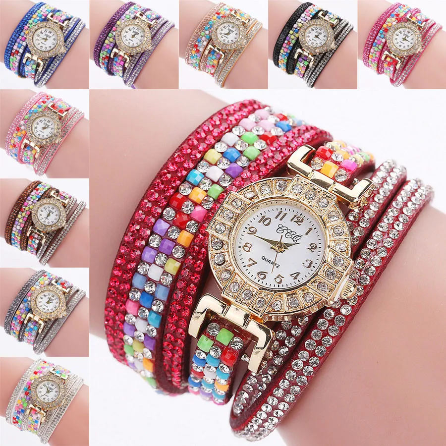 상품 내용 CCQ 여성 패션 캐주얼 아날로그 석영 여성 라인 석 시계 팔찌 시계 특징: