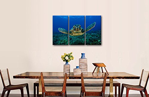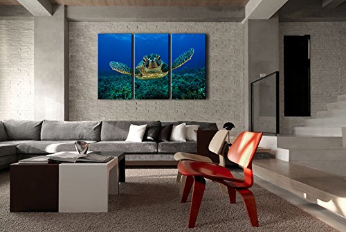 -. Title : So Crazy Art® 3 Panel Blue Wall Art Painting Turtle Looking Swim In The Sea P.R.Ints On Canvas The Picture Animal Pictures Oil For Home Modern Decoration P.R.Int Decor