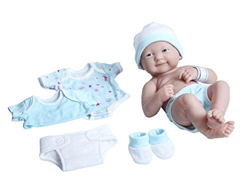 La Newborn Nursery 8 Piece Layette Baby Doll Gift Set, featuring 14" Life-Like Smiling Newborn Doll, Blue