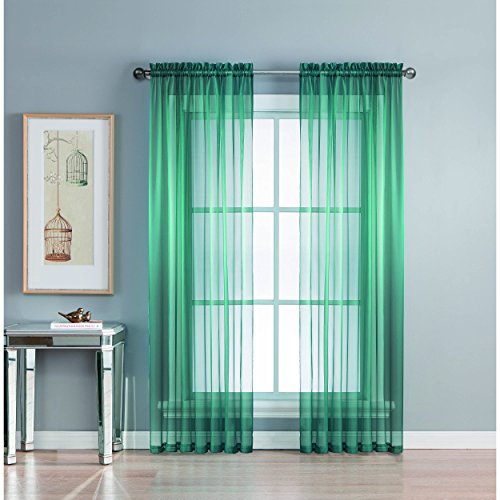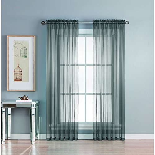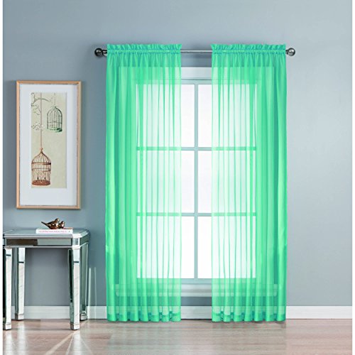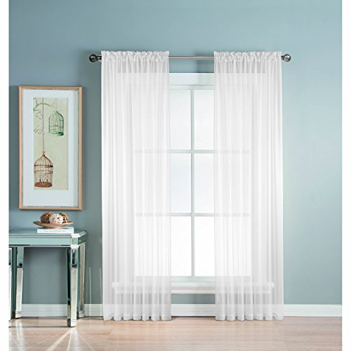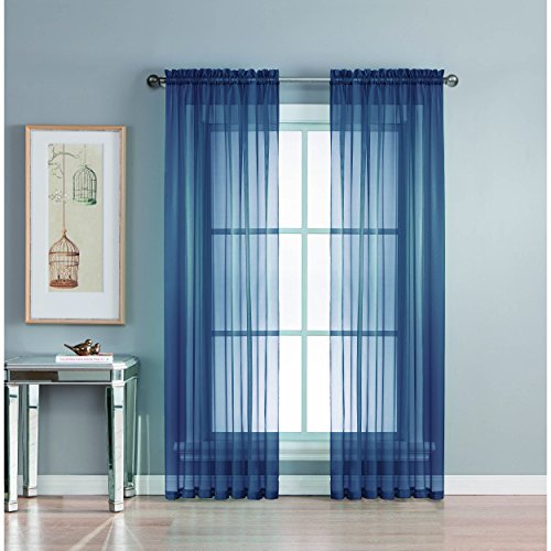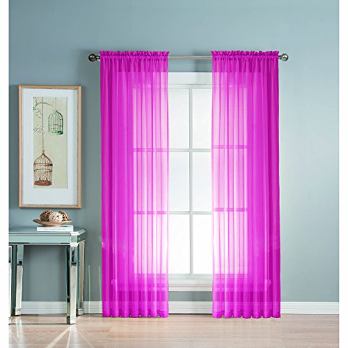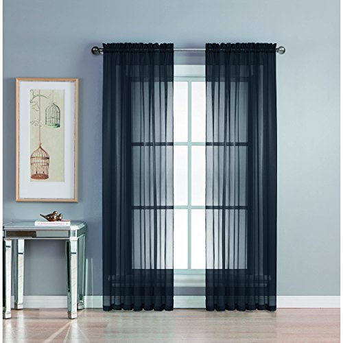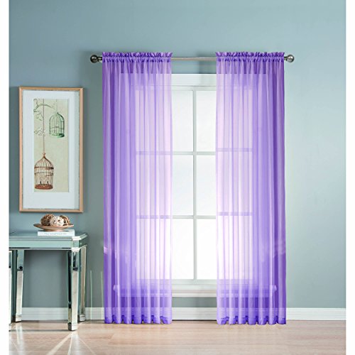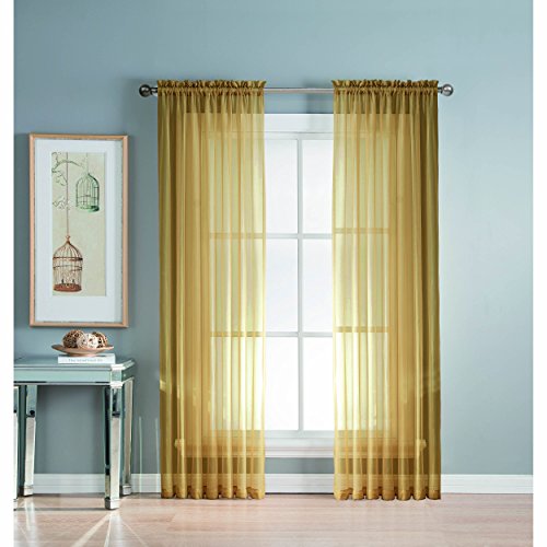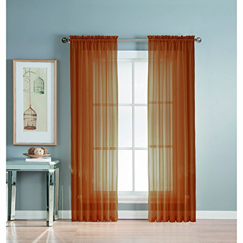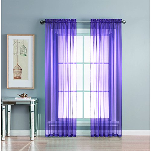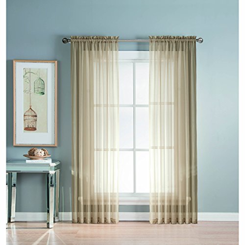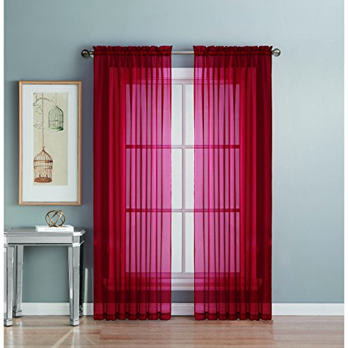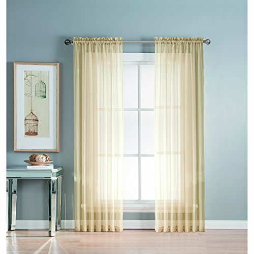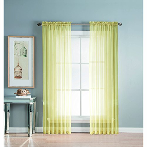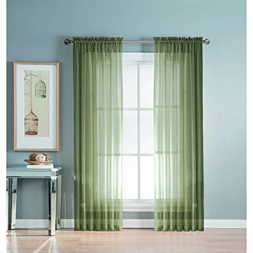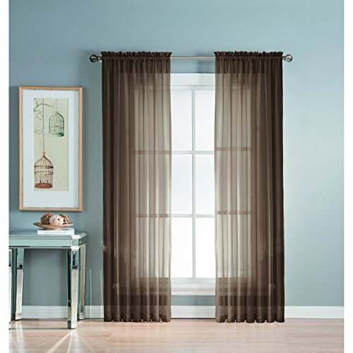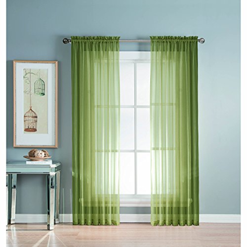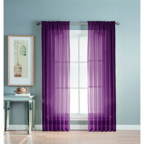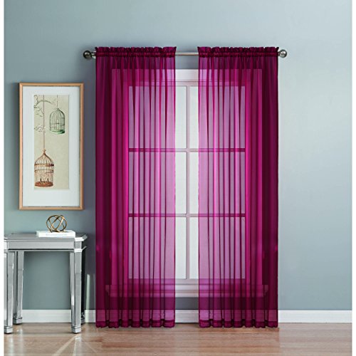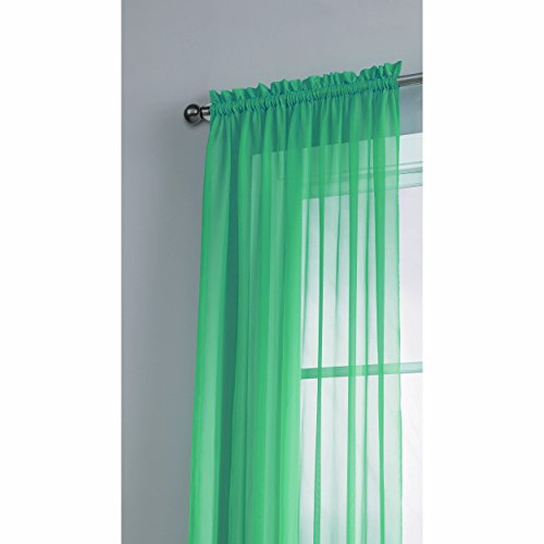 Add style and elegance to any living space with sheer curtain panels. Each solid-color panel filters light while creating privacy for any room in your home. Add sheer curtains to your existing draperies for a layered, designer look or hang on their own to let in just enough light during the day and sheer coverage at night. Easy to hang rod pocket header measures 2 in. To accommodate up to a 1.5 In. Curtain rod. Hang two or more sheer panels to create your desired look. Perfect for bedroom, living room, dining room and kitchen, sheers add a layer of privacy and design flair to any living space. Solid sheers can be hung to create a more subtle affect in a child's room or nursery. Each panel measures extra wide 56 in. In your choice of 63, 84, extra-long 90 or 95 in. Lengths. Available in an array of fashion colors. Sold as a single curtain panel. Coordinating curtain scarf sold separately. Hang two or more sheer panels and coordinating scarf to create a complete designer look. Decorative rod sold separately. Easy care, machine wash cold, delicate cycle with mild detergent. 100% polyester. Imported.Feature