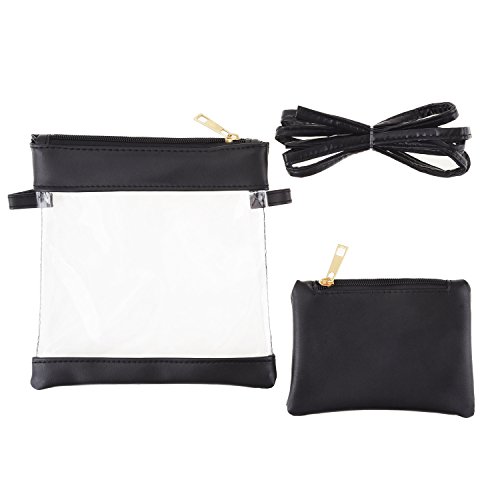 Material: the shoulder bag is made of and durable PVC and PU material with an adjustable strap; Color: big clear bag and small black purse