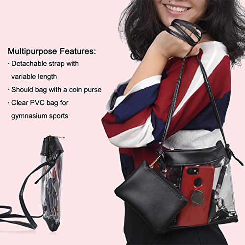 Sumind Clear Shoulder Bag Messenger Shoulder Bag with Adjustable Strap and Black Small Purse