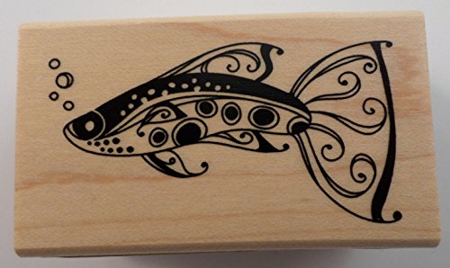 -. Title : Inkadinkado Wood Mounted Rubber Stamp K, Fancy Fish