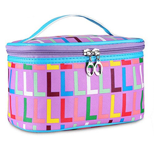 HOYOFO Portable Travel Makeup Bag Cosmetic Organizer Case with Mirror ,Purple
