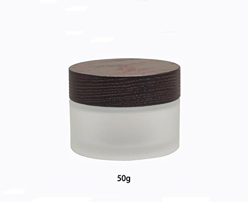 - Capacity:50G;Material:Glass body part with wood lid