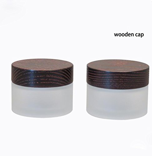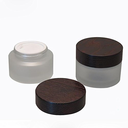 1 PCS Empty Upscale Glass Face Cream Bottle with Wood Lid-Refillable Cosmetic Container with Plastic Liner and Black Screw Cap Makeup Jar Pot Essential Oils Lotion Holder (50G)