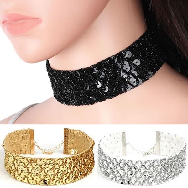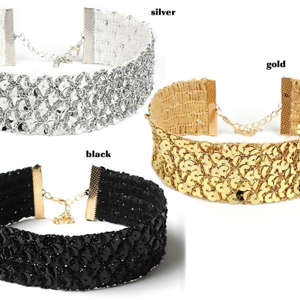 | 【即納】スパンコール チョーカー アクセサリー ゴールド シルバー ブラック[ネコポス可] 【チョーカー レディース gold silver ドレスに ダンス衣装 accessory ネックレス 小物 おしゃれ コーデ スパンコール 幅広 チョーカー】 | |