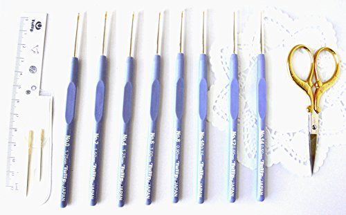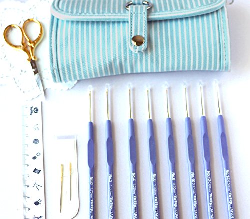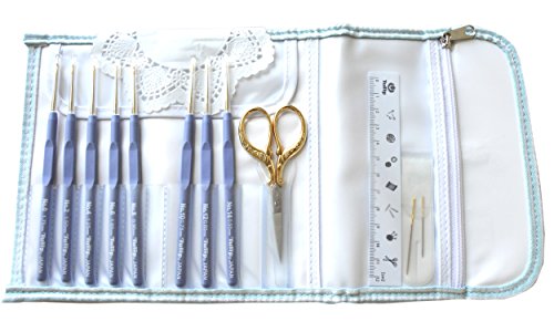 - Includes 8 crochet hooks with cushion grip (0.50, 0.60, 0.75, 0.90, 1.00, 1.25, 1.50, 1.75mm), high-grade scissors (gold), two yarn needles, ruler, and an adorable case.