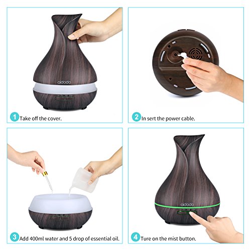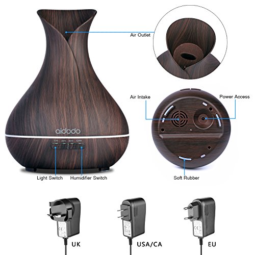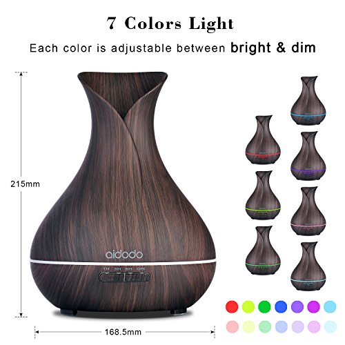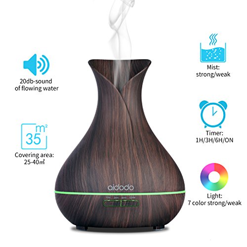 Aroma Diffuser, Aidodo 400ml mit Ultraschall Ol Diffusor Holzmaserung Luftbefeuchter Duftzerstauber Humidifier Aromatherapie Diffusor 7 Farben LED Licht Tragbarer fur Babies Kinder