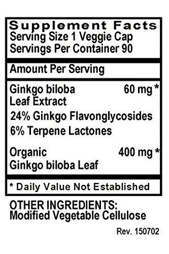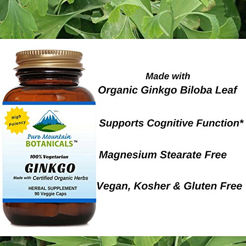 -. Feature : Contains Organic Ginkgo Biloba Powder and Potent Extract to help You feel the best with support for brain and mental function.* / Our Ginkgo Biloba Supplement is standardized to contain 24% Ginkgo Flavonglycosides & 6% Terpene Lactones / Our Ginko Biloba is VEGETARIAN, KOSHER and GLUTEN FREE. Feel Secure Knowing You're Only Putting the Absolute Best Product in Your Body, Made with NO Harsh Preservatives, Fillers or Flowing Agents - NO Sodium Benzoate, NO Magnesium Stearate, NO GMOs / 460 mg per vegetarian capsule / 90 capsules per bottle / 100% MANUFACTURE'S MONEY BACK GUARANTEE - Try the Best - Risk Free! These Organic Ginkgo Biloba capsules and ALL Products from Pure Mountain Botanicals™ are covered by a no-questions asked money back guarantee.