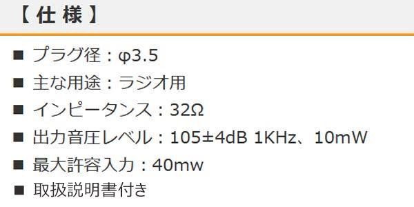 fk094igrjs耳かけを逆にすると左右どちらの耳にも対応します サイズ 個装サイズ:6×16×2cm 重量 個装重量:39g 生産国 中国 ラジオ用耳かけ式モノラルイヤホン 耳かけを逆にすると左右どちらの耳にも対応します