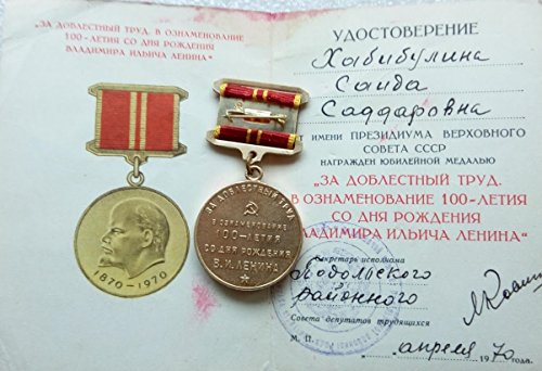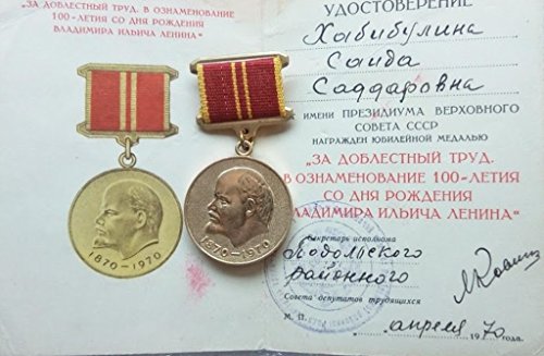 Medal "In commemoration of the 100th anniversary of the birth of Vladimir Ilyich Lenin" For valorous work. USSR Soviet Union Russian award Khabibulina women