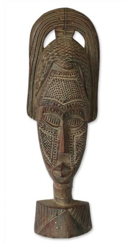 NOVICA Decorative Peace And Calm Sese Wood Mask with Stand, Brown, 'Peace II'