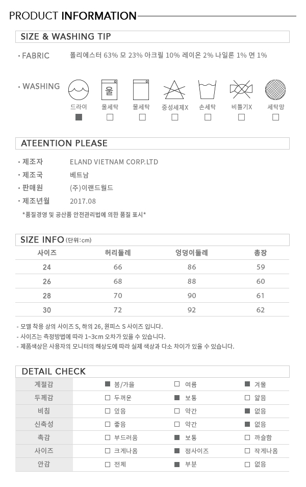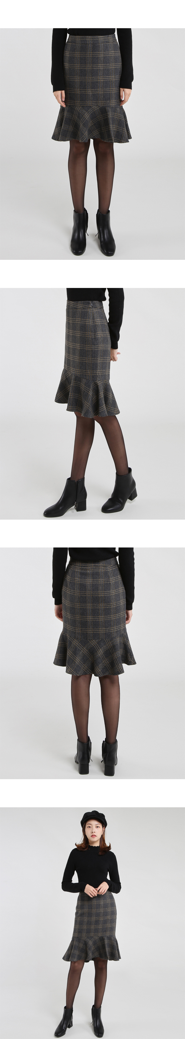 - 모가 들어가 보온성을 높여주는 체크 머메이드 스커트입니다.