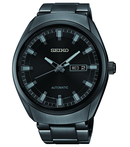 -. Binding : Watch -. Brand : Seiko -. Color : Black -. Department : mens -. EAN : 0029665180285 -. Feature : Round watch featuring logoed black dial with stick indices and day/date window at 3:00 / 44 mm stainless steel case with Hardlex dial window / Automatic self-wind movement with analog display / Stainless steel bracelet and fold-over push-button clasp with safety closure / Water resistant to 50 m (165 ft): In general, suitable for short periods of recreational swimming, but not diving or snorkeling -. Label : Seiko Watch Corporation -. Manufacturer : Seiko Watch Corporation -. Model : SNKN43 -. MPN : SNKN43 -. PackageQuantity : 1 -. PartNumber : SNKN43 -. ProductGroup : Watch -. ProductTypeName : WATCH -. Publisher : Seiko Watch Corporation -. ReleaseDate : 2014-06-26 -. Studio : Seiko Watch Corporation -. Title : Seiko Men's SNKN43 Analog Display Automatic Self-Wind Black Watch -. UPC : 029665180285