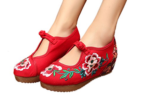 -. Title : AvaCostume Womens Embroidery Floral Platform Wedge Mary Jane Shoes