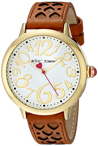 Polished gold-tone stainless steel case. Cut-out hearts leather strap with buckle closure. Three-hand analog display with quartz movement. Dial features gold-tone hands and numerals. Water resistant 3 ATM/30 meters. Imported.