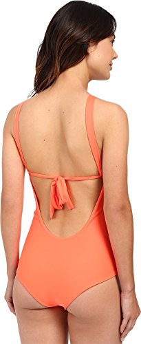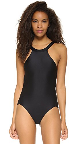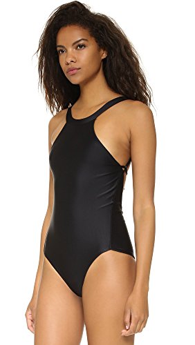Product DescriptionHigh neck one piece swimsuit with adjustable back straps that crisscross or tie straight down0