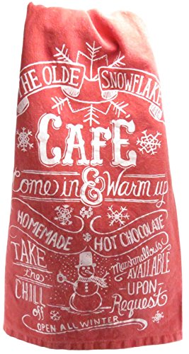 - HOLIDAY CHEER: Use “The Olde Snowflake Café” dish towel anywhere in your home to spruce it up with even more holiday cheer. Place it on your counter when you share hot drinks or meals with loved ones during the holiday season. Its distressed look makes it feel like you’re stepping back in time reminiscing about fond holiday memories.