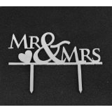 Mirror Silver Acrylic Cake Topper Party Decoration Cupcake Stand (Mirror Silver - Mr & Mrs(2))