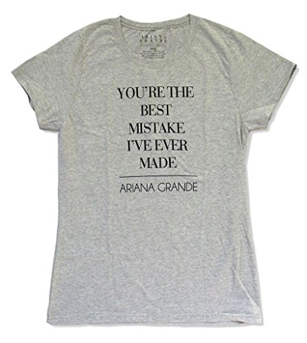 -. Binding : Apparel -. Brand : Real Swag Inc -. Department : womens -. Feature : Brand New - Official - Licensed - Authentic / Ariana Grande - 90% Cotton/10% Polyester / Printed text image on the front. / Authentic shirt!! / Girls/Juniors/Babydoll sizing -. ProductGroup : Apparel -. ProductTypeName : SHIRT -. Title : Ariana Grande Best Mistake I Every Made Girls Juniors Grey T Shirt