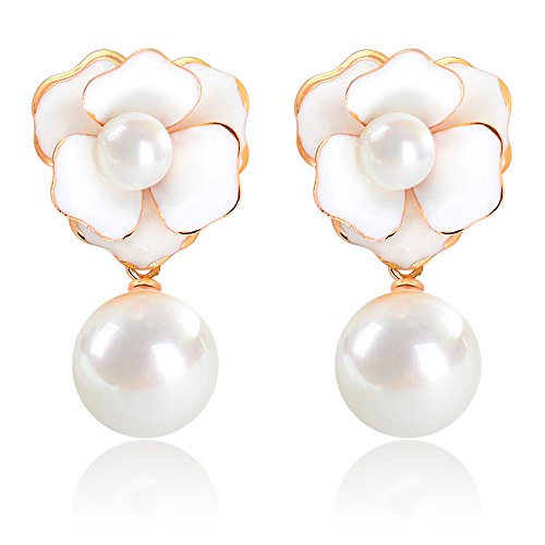 -. Title : [スーエン] SUYAN ピアス レディース 揺れる スタッドピアス パール フラワー モチーフ ステンレス 金属アレルギー対応 (ホワイト)