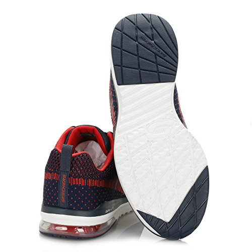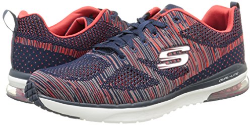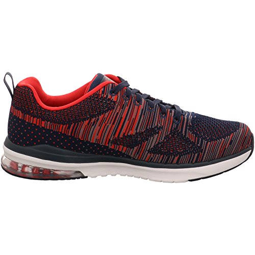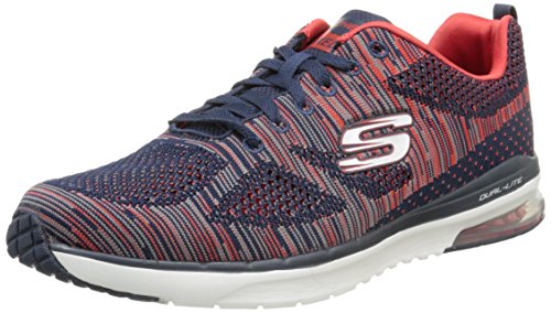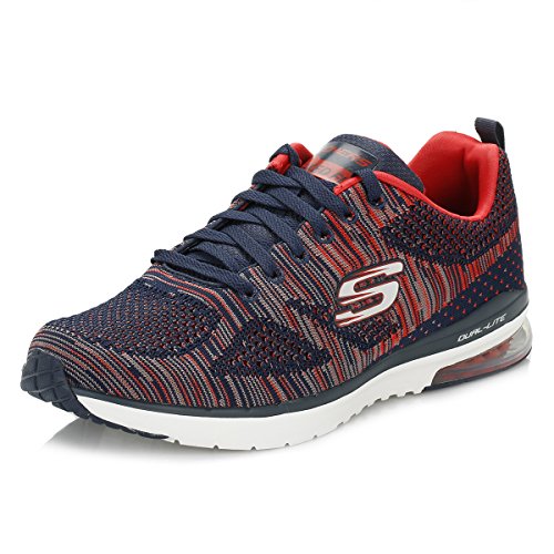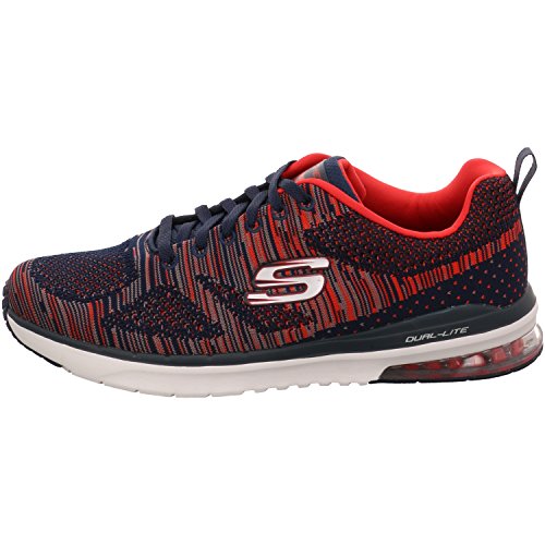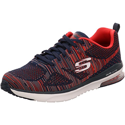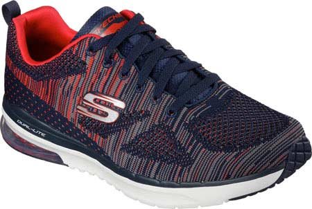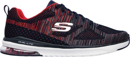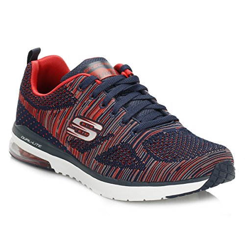Binding : Apparel Product Description Go full-tilt in comfort and sporty design with the SKECHERS Skech-Air Infinity - Rapid Fire shoe. Athletic flat knit mesh one piece fabric upper in a lace up athletic sporty training sneaker with visible air cushion heel and Air Cooled Memory Foam insole. Lace up athletic sporty training sneaker design Heel fabric stripe overlay with pull on top tab Padded collar and tongue Air Cooled Memory Foam cushioned comfort insole Skech-Air shock absorbing lightweight midsole; stabilizing midsole detail Visible transparent air cushion heel design Flexible traction outsole. 0