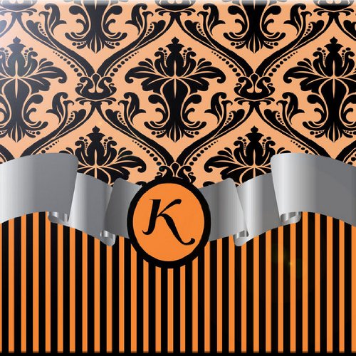 Rikki Knight RK-6intilec-2135 6" X 6" Letter "K" Orange Damask Stripes Monogrammed Design Ceramic Art Tile