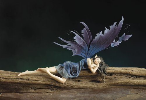 Gorgeous Fairy Collection Amethyst Pixie Lying on Shelf Figurine Statue Shelf Desk Decoration (Wood Log Not Included)