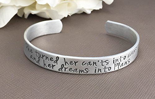 -. Title : 0.75" x 6" Hand Stamped Bracelet Cuff -She turned her can'ts into cans and her dreams into plans- Personalized Inspiration Gift