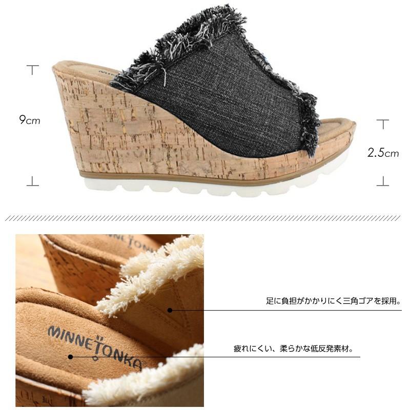Minnetonka ミネントンカ YORK ヨーク サンダル 73301 レディース ウエッジソール ヒール デニム ブラック 新作|harbest