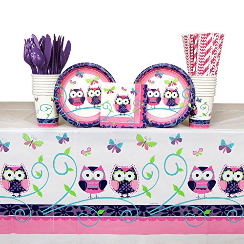 -. Title : Owl Pal Party Supplies Pack for 16 Guests: Straws, Plates, Napkins, Cups, Cutlery, and Table Cover