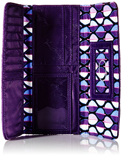 PERFECTLY PLACED POCKETS: Our Vera Vera Trifold Wallet measures 8.25 x 4 x .75 inches and featuring 1 zippered exterior coin pocket, 3 interior slip pocket, 11 card slips, and both ID and photo window