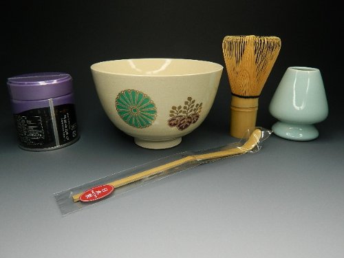 -. Title : おいしい抹茶たっぷり40g入り 仁清写しの抹茶茶碗もついてくる【高台寺】 お抹茶5点セット 抹茶碗(日本製) 京都上林春松本店製お抹茶付き 茶道具
