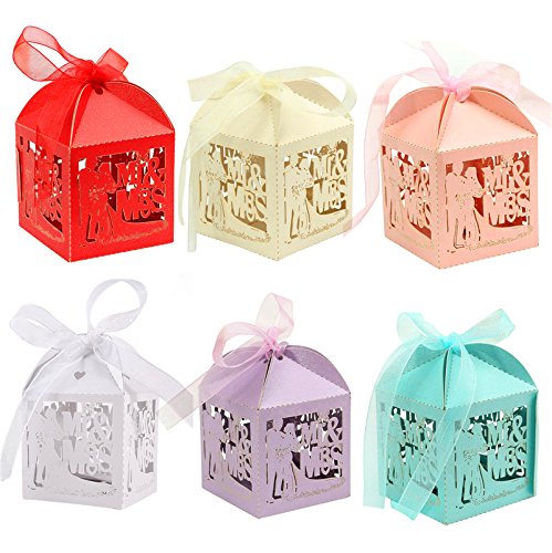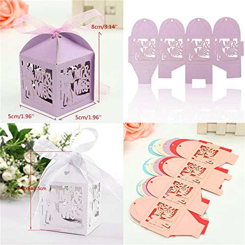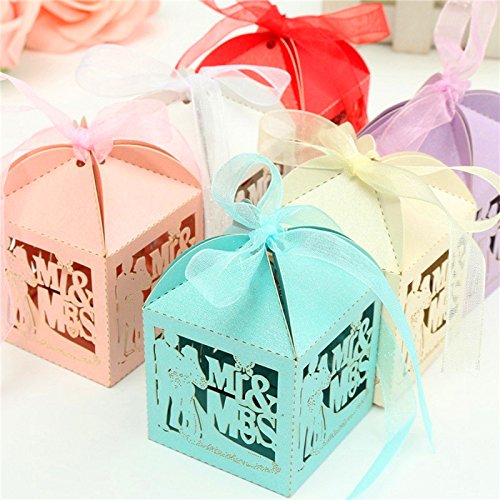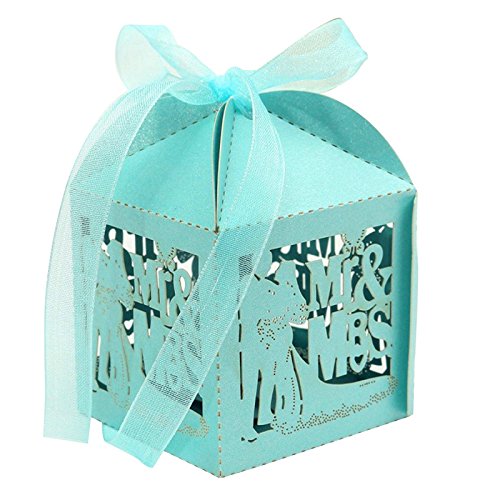 Zorpia® 50pcs/Pack DIY Bride and Bridegroom Candy Gift Box with Ribbon Laser Cut Wedding Parties Favors Decorations in Pearl paper candy box wedding favors and gifts valentine's day ZRA 0168917 (blue)