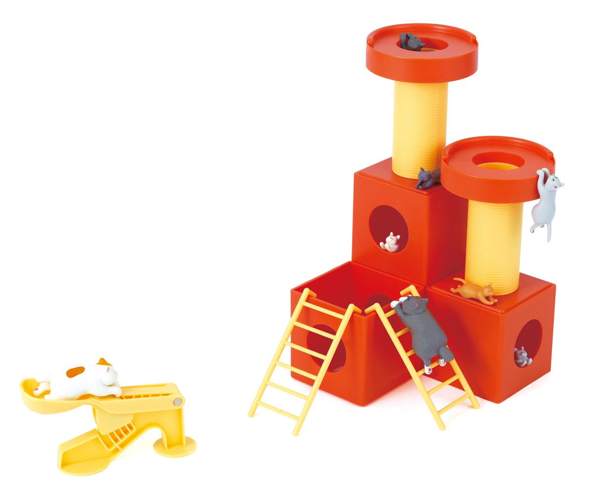 Cat figure 32, Jump table x 4, Tower parts (box x 4, pillar x 2, pedestal x 2 ladder x 2, clip x 6) - Instructions