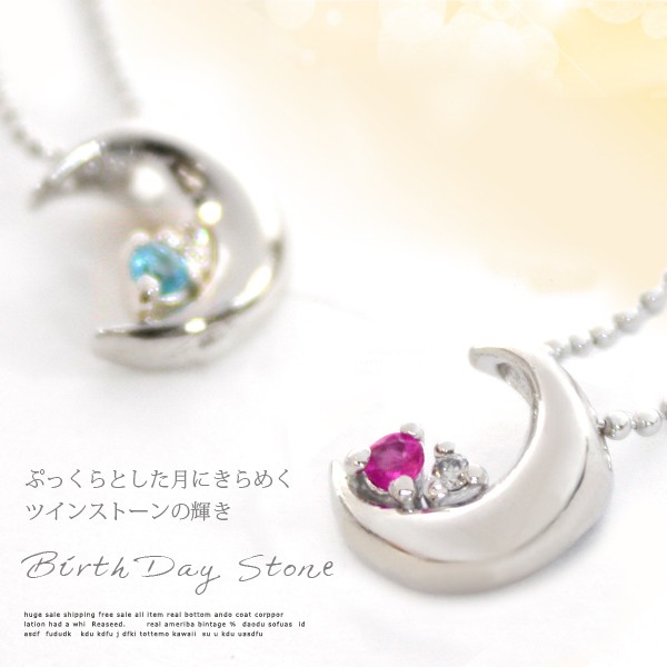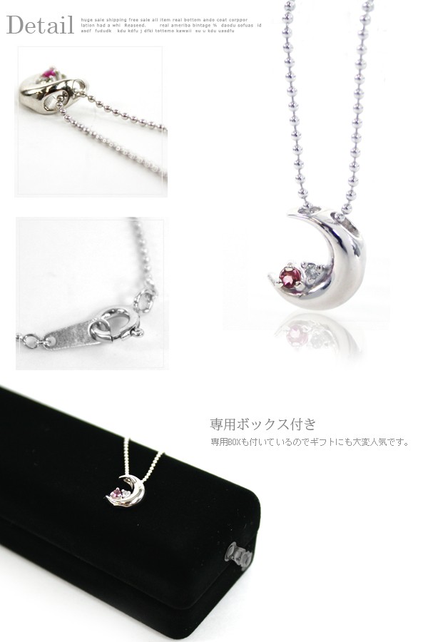 ■シルバー クレッセントムーン誕生石ネックレス 7月 ルビー