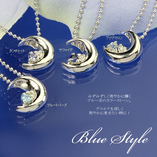 ■シルバー クレッセントムーン誕生石ネックレス 9月 サファイア[当ページ]