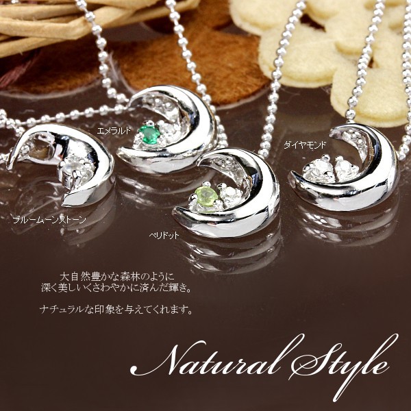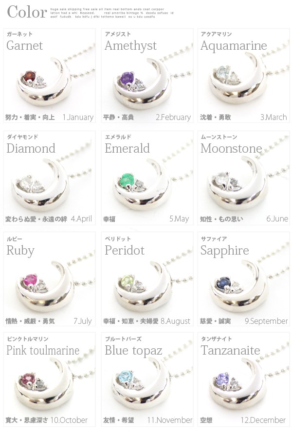 月に願いを込めて!妖艶な三日月に天然石とダイヤモンドがさりげなく大人の魅力を引き立てる、とってもセクシーなムーンネックレス!12誕生石から自分の好きな石をチョイス出来ちゃうペンダントで、大人なコーデからキュートな小悪魔コーデまで!合わせ方次第で様々な印象の胸元を演出してくれるとっても優秀なムーンペンダント。プレゼント・ギフトにとってもオススメ!