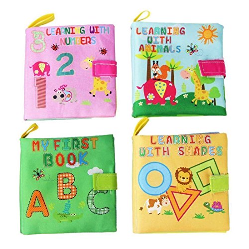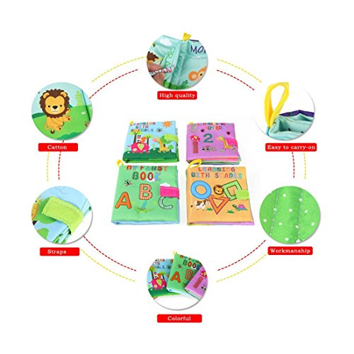 ENCOURAGE EARLY DEVELOPMENT - Baby first book teaches your little one how different things feel by touch with these soft books, watch them get excited over touching different textures, and teaches them basic reading and comprehension, ABC's alphabetic letters,123 numbers and all the different shapes and animals. These cloth books also stimulate baby first year memory