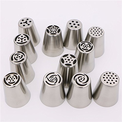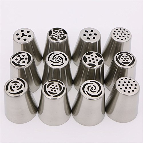 Misula 12Pcs/Set Stainless Steel Russian Large Size Icing Piping Nozzles Tulip Rose Nozzles for Cake Cupcake Decorating Flower Cream Nozzles Pastry Tips